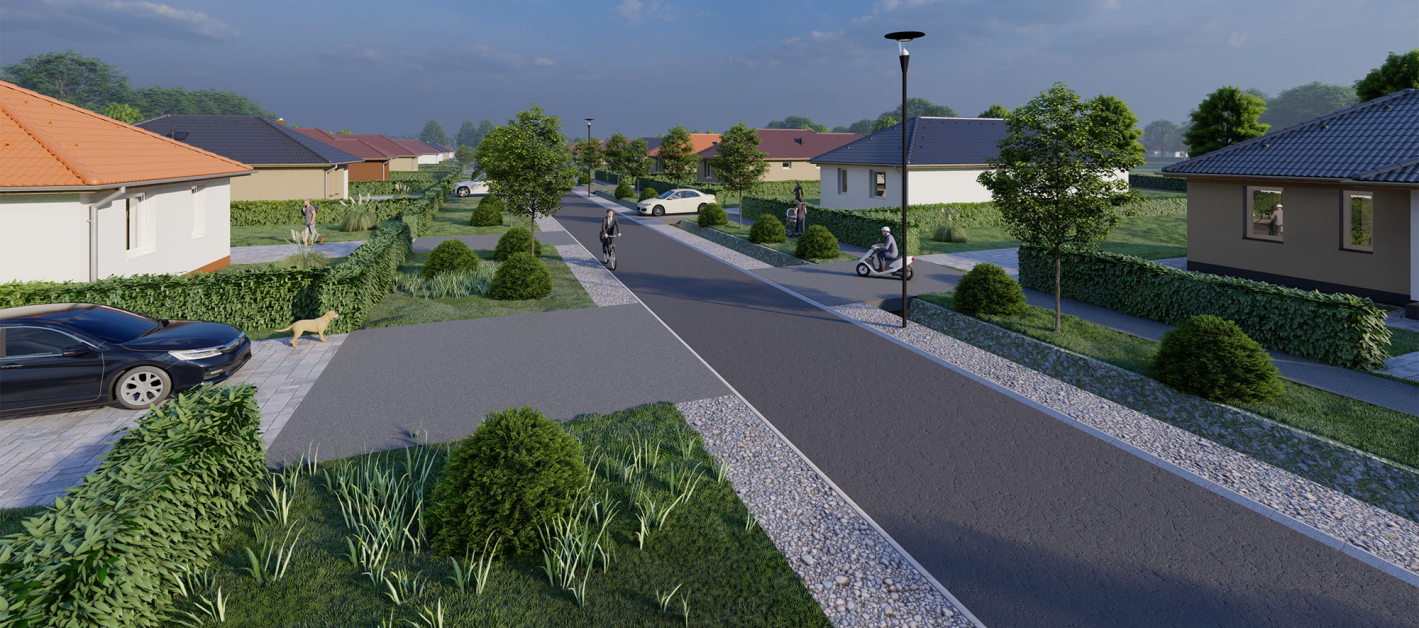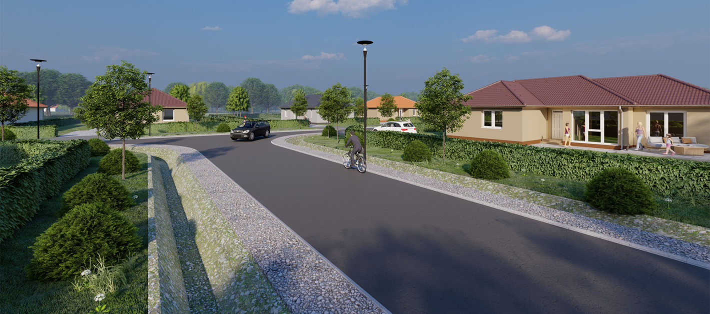 Győrtől 17 km-re, az M1-es autópályától mindössze 8 percnyi autóútra fekvő csendes, ám kitűnő infrastruktúrájú rábaközi településen épülő új családi- és ikerházak várják Önt is.