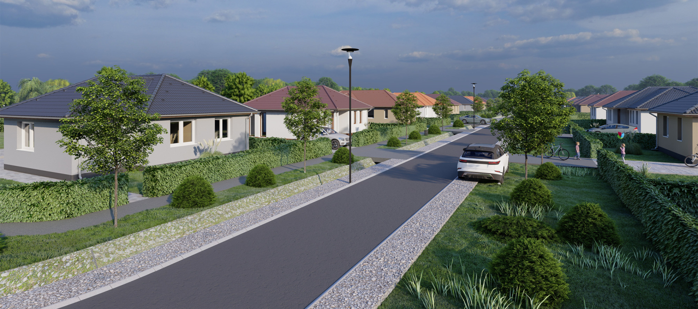 Felépülő házaink egyéni igények szerint, átgondolt tervezéssel, kényelmes kialakítással, magas színvonalon és rövid beköltözési határidővel épülnek.